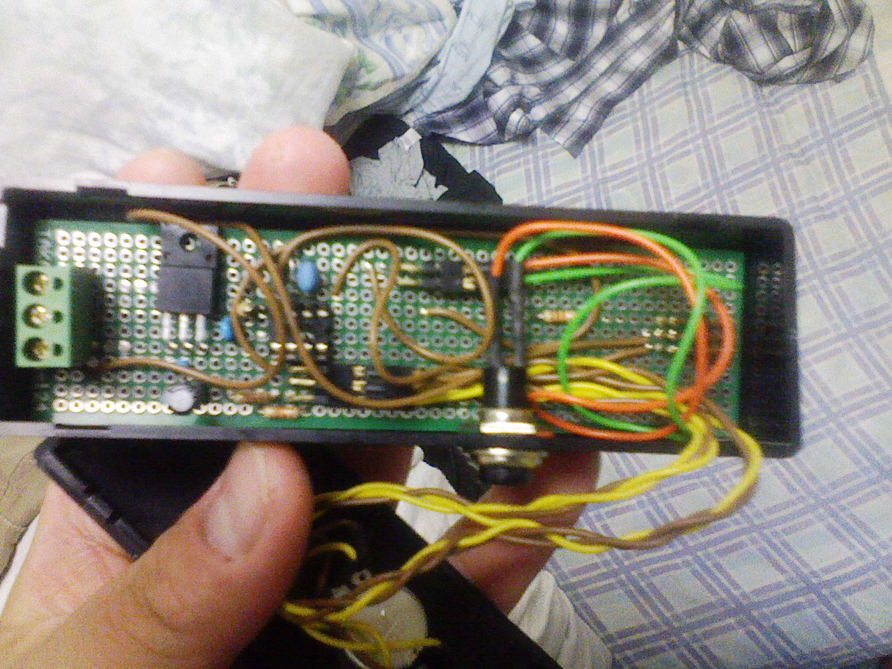 あとはスイッチ(MCLR用)と電源取り込み用端子と出力端子を付ければ外部加工は完了です