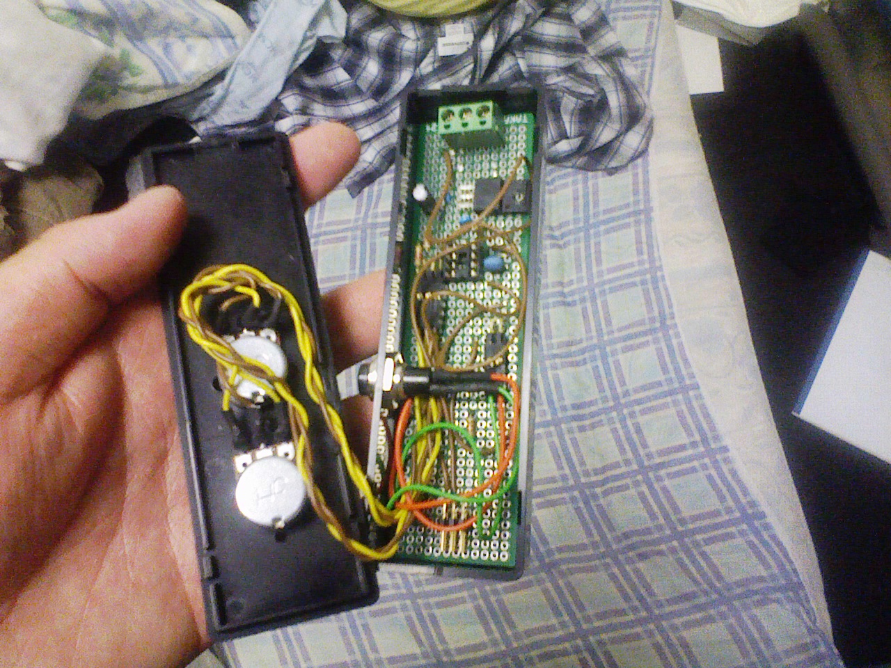 使う箱(SW-130とかいうの)のユニバーサル基板で合わせて見ると意外とスペースがあるので18ピンver.も考えてみました