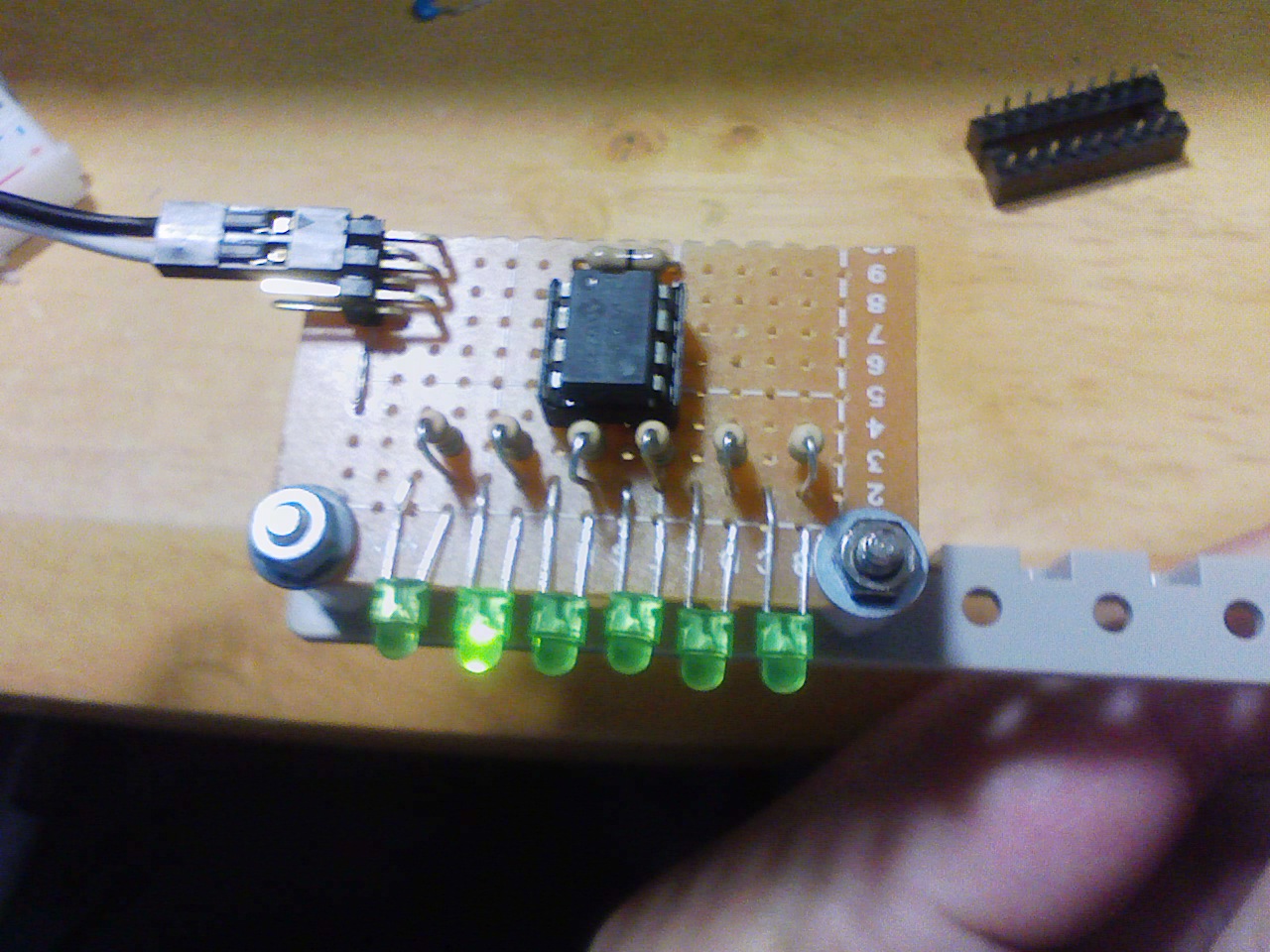 左から3番目のLEDが点灯せず右から左へ点灯していきます