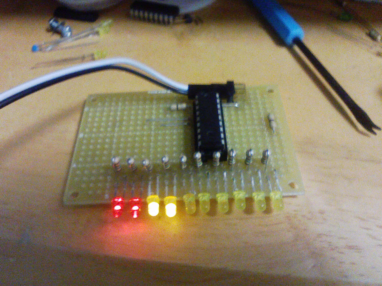通電テストでハードは上手くいったのを確認したのですが16f88のプログラムの方が少し問題があってRB4が上手く点灯出来てない様子、