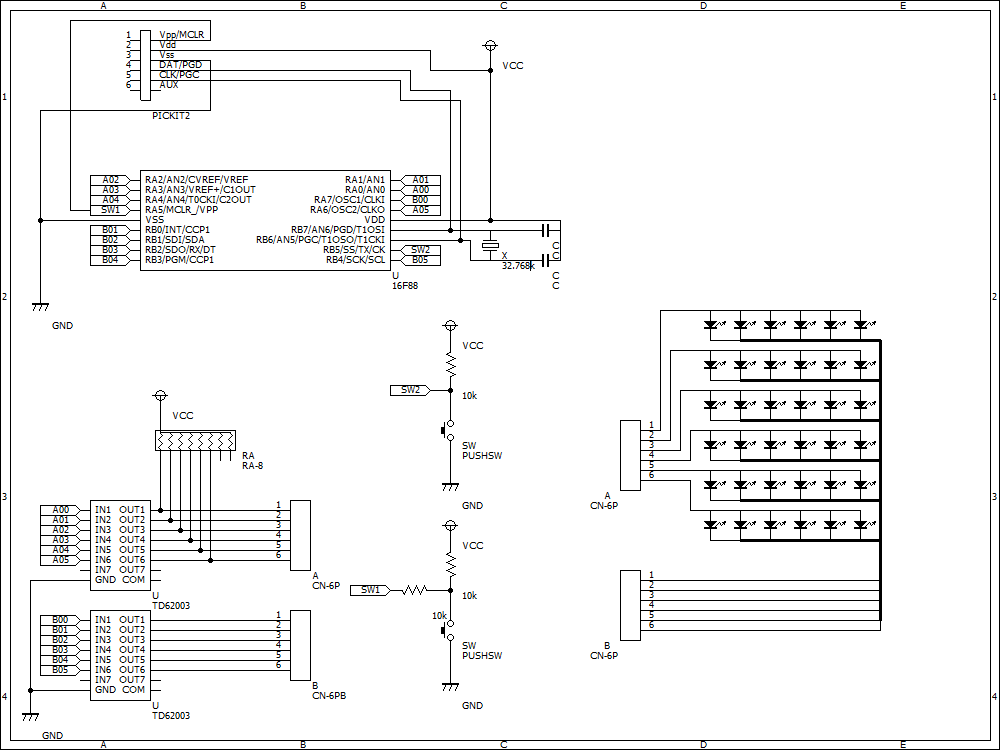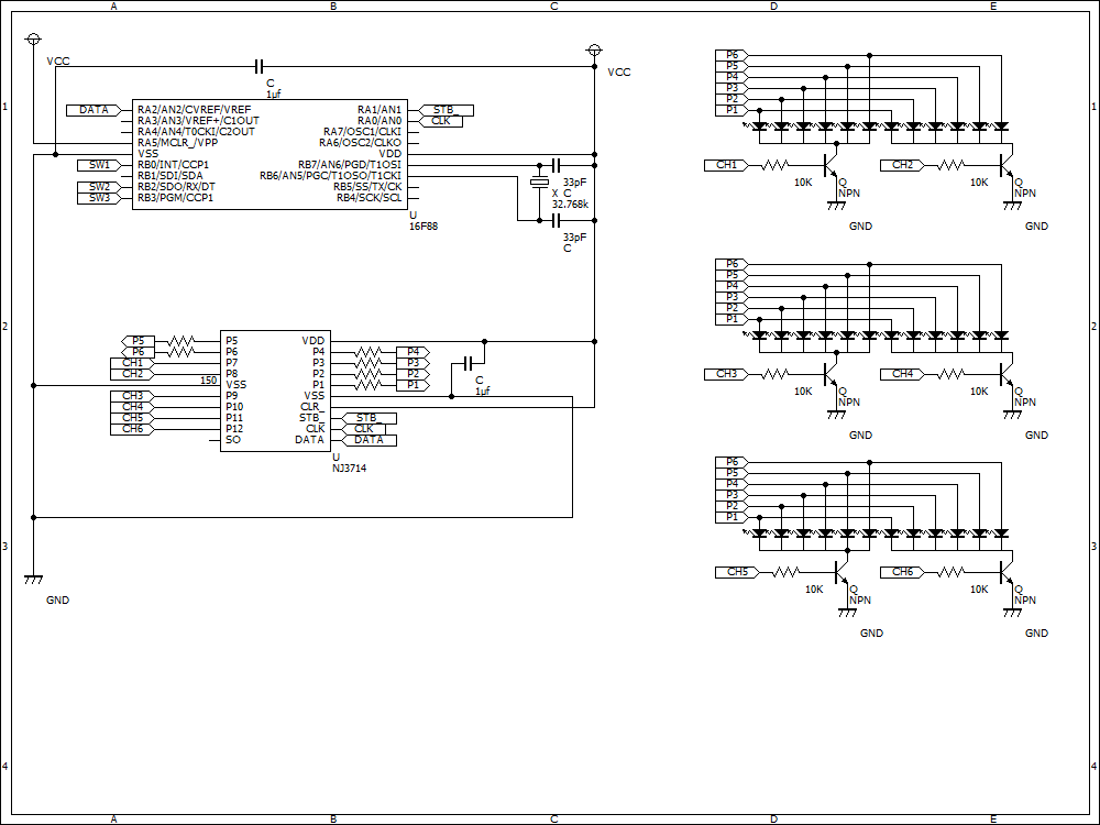 PICから出るI/Oをトランジスタに介してダイナミック点灯で駆動させる方法で駆動