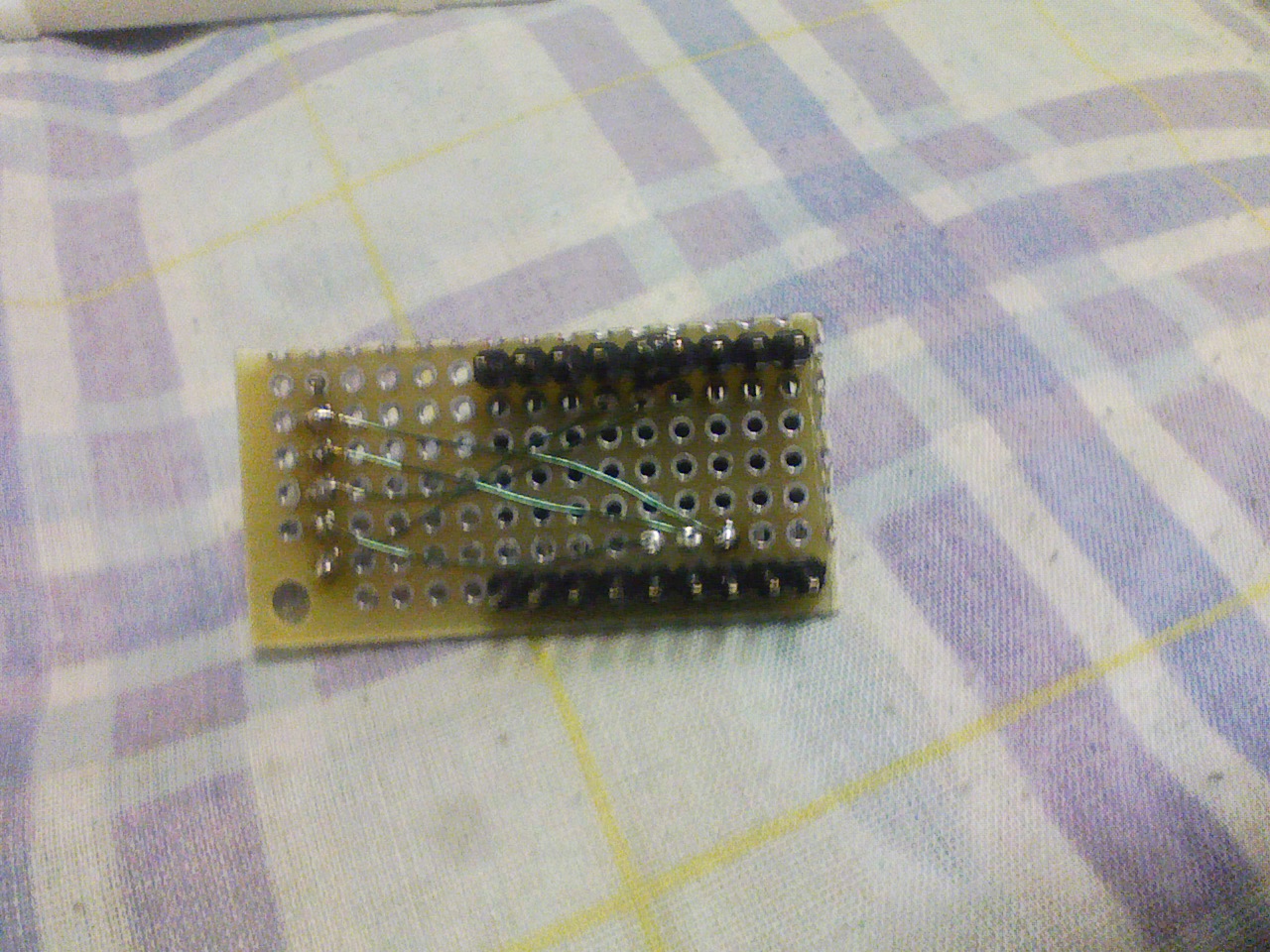 使おうとしていたのはUP-203という縦15個×横25個位の穴が開いた基盤ですが普通のトランジスタを使うにしても抵抗使用の面積が大きくそれに収めるのは難しそうです